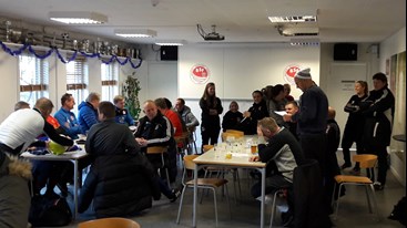 Holdene fordeles i klubhuset. Se fotogalleri her på siden, måske genkender du nogle af spillerne :-)